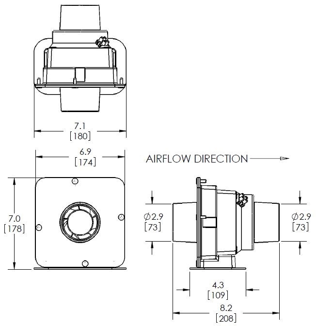 In 2001 MSI were approached by a yacht builder to design a quiet fan to duct stale air from their heads (bathroom). They found an excellent source of DC brushless axial cooling fan and mated it to a special PG mounting receiver. As in all of their PG receivers it mounts on the finished side of the wall and their plastic framed grille is "snapped" into the receiver and held with stainless steel spring catches. The standard receiver (shown below) also includes a 4" hose ring for routing the stale air outside.