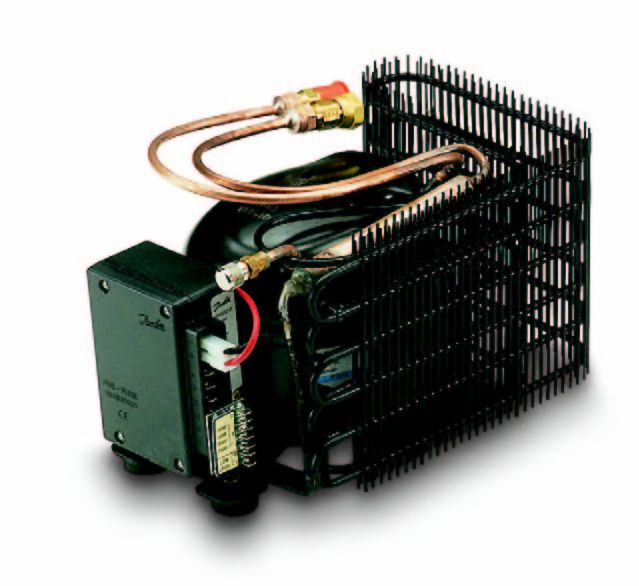The new Danfoss BD series compressors are speed variable so you can match compressor output to your cooling requirements. The Compressor will draw 2.2 amps @ 12 volts while running at their slowest speed and at their highest speed setting they can draw up to 3.8 amps. The compressor will cycle on and off as the thermostat reaches it’s set points.