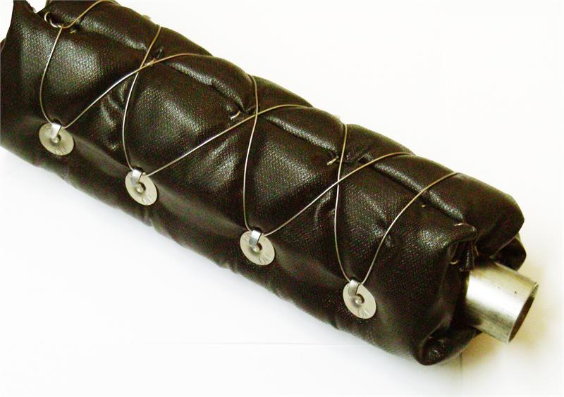 1-1/2" Marine lace-on high temperature exhaust insulation (shown installed on exhaust tube). Black High Temperature Silicone Cover hides dirt and is easy to clean.