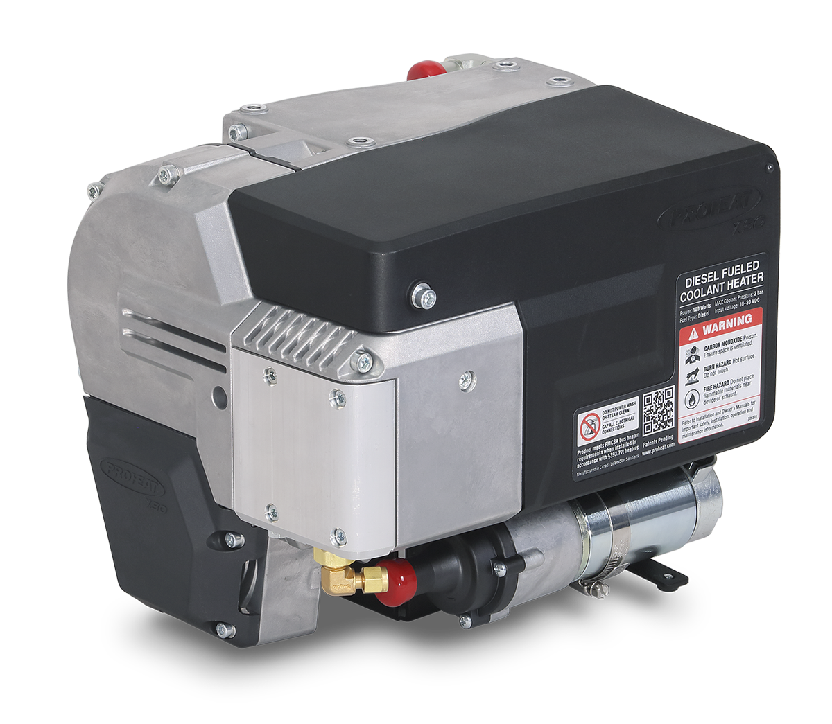 The X30SW-12 hydronic heater offered by Proheat will heat up to a 42 foot sailboat or a 40 foot powerboat. With it’s integral circulation pump the X30SW-12 utilizes 3/4” water hose to deliver heated coolant to fan heaters throughout the boat (3 gpm @ 10 ft head). The X30SW-12 uses a 1-1/2” rigid exhaust system, and a 3/16” fuel system.
