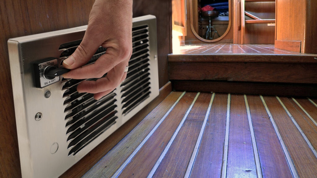 A heater unique to King, featuring the ability to choose the wattage needed. A heavy-duty industrial switch mounted on the grill allows quick selection of up to 7 different heat settings. Use where higher wattage is not required during unoccupied periods. Typical installations are toll booths, motor home/RVs, pleasure craft and cabins. By providing air movement and dry heat, musty, moldy odors are reduced and interior fabric life is maximized. Utilizing a lower wattage provides winter freeze protection with the bonus of energy savings. During RV use, the heater load (Amperage) can be adjusted to the receptacle or cord size. This prevents damage to plugs and receptacles due to overloading. During lay-up periods, wattage can be adjusted to the correct level. Quiet operating tangential cylindrical (squirrel cage) blower and commercial grade element make the Dial-A-Watt™ the heater of choice for people on the move. Thermostat sold separately